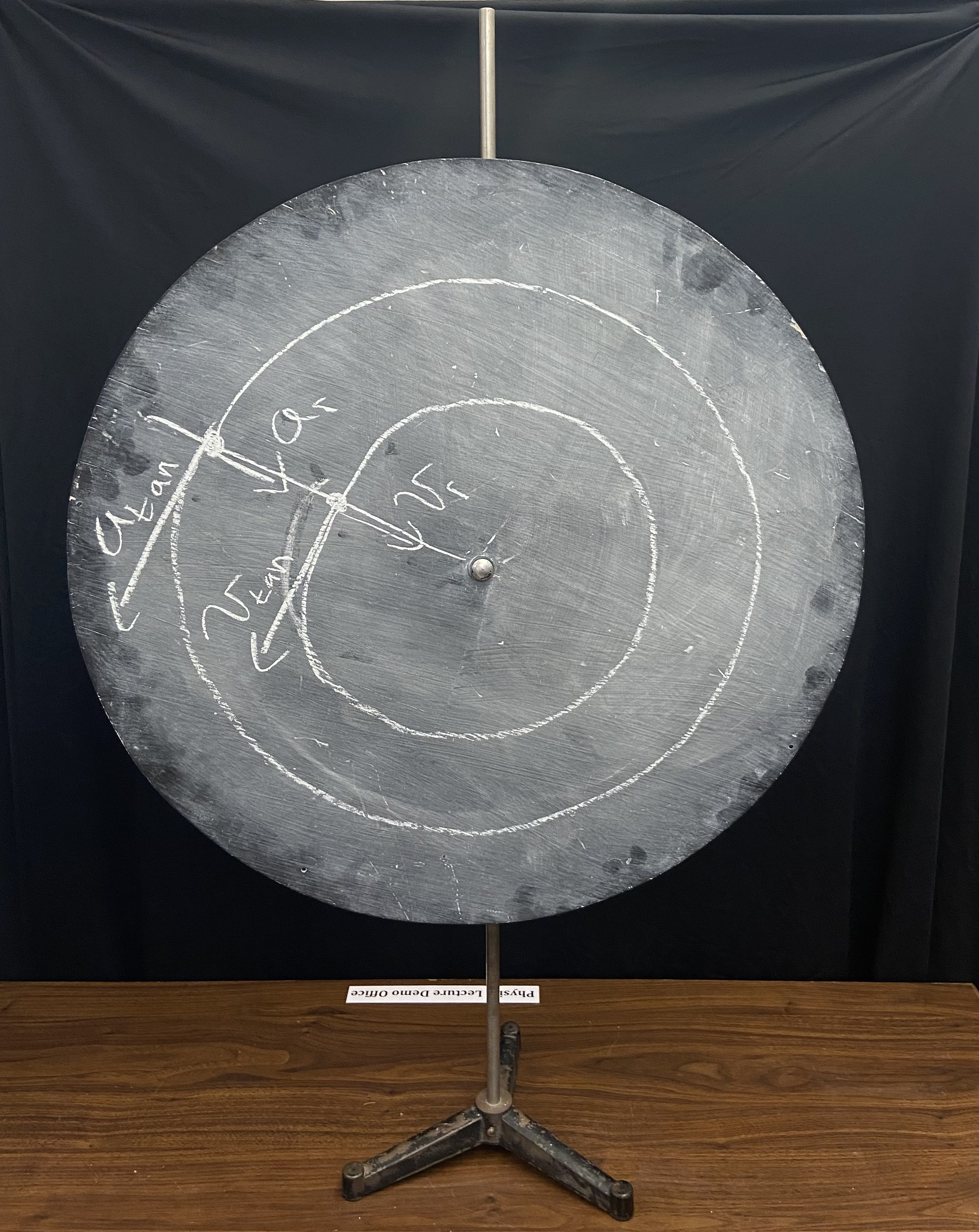 - A circular, rotatable chalk board is used to demonstrate angles, vectors for rotational dynamics, and more.