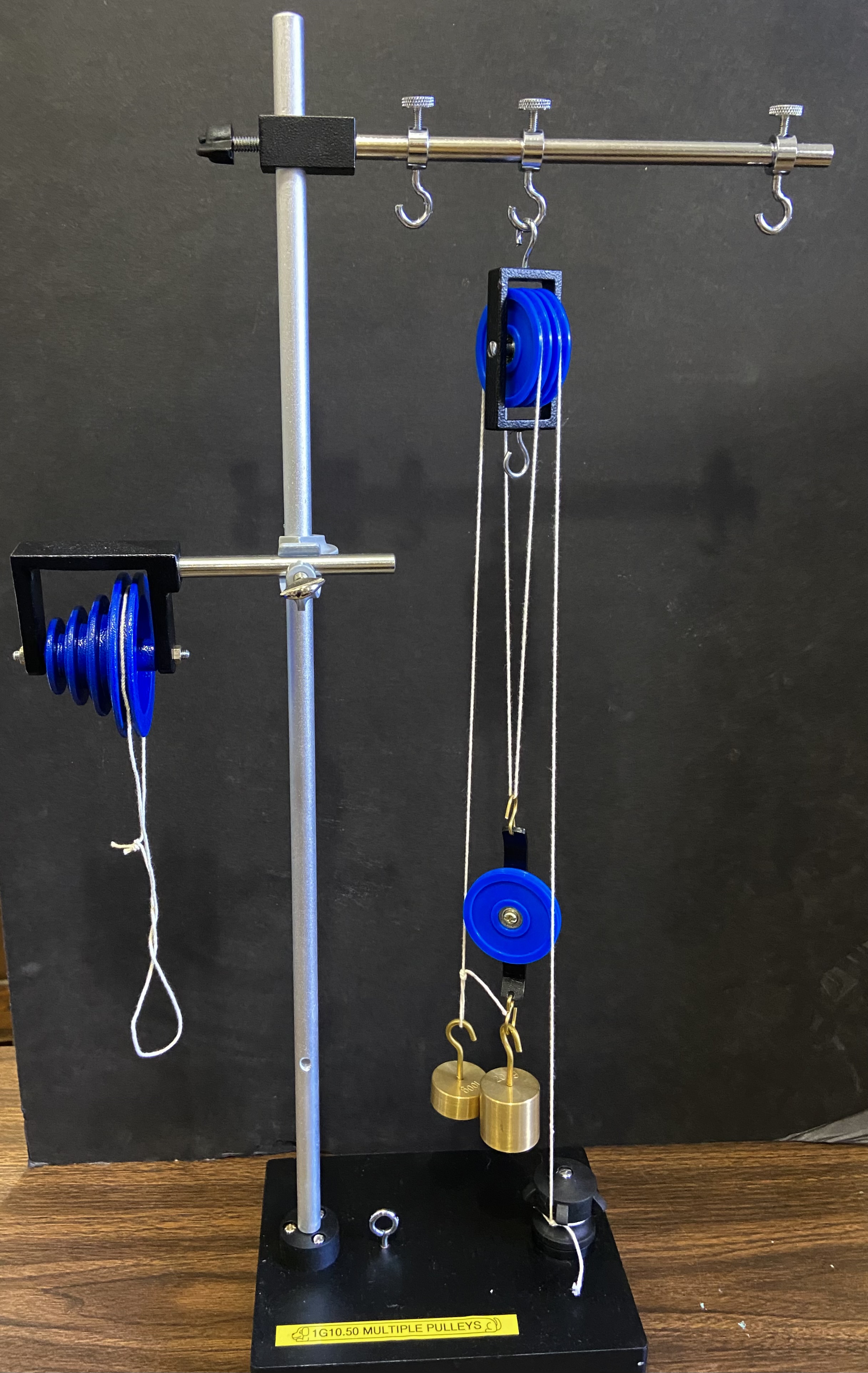- DO NOT attempt to transport pulley system into classroom when masses and pulleys are already hanging from bar. They will fall off and potentially break.