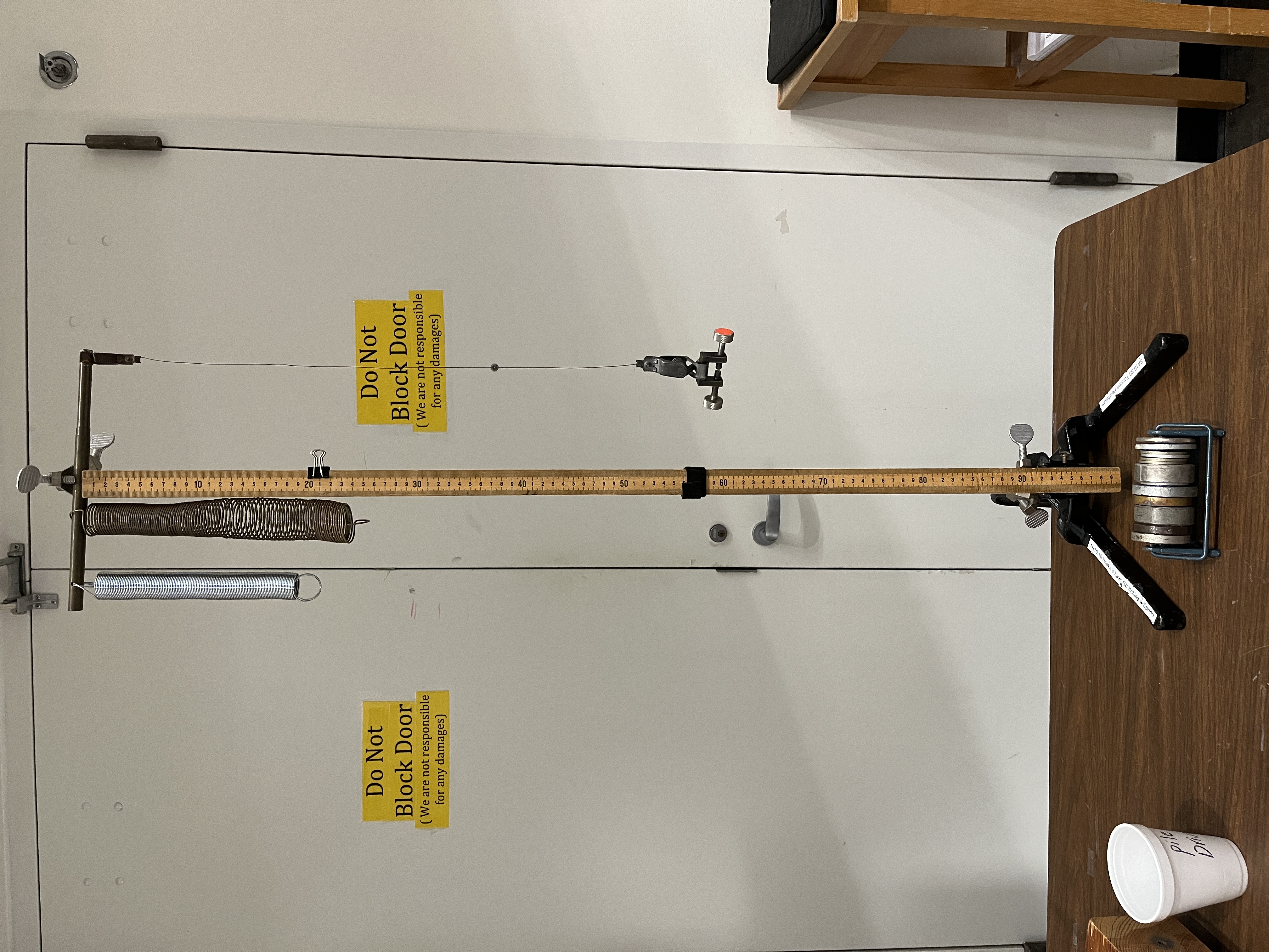 - Add each 233 gram mass to the hanger marking the positions after each