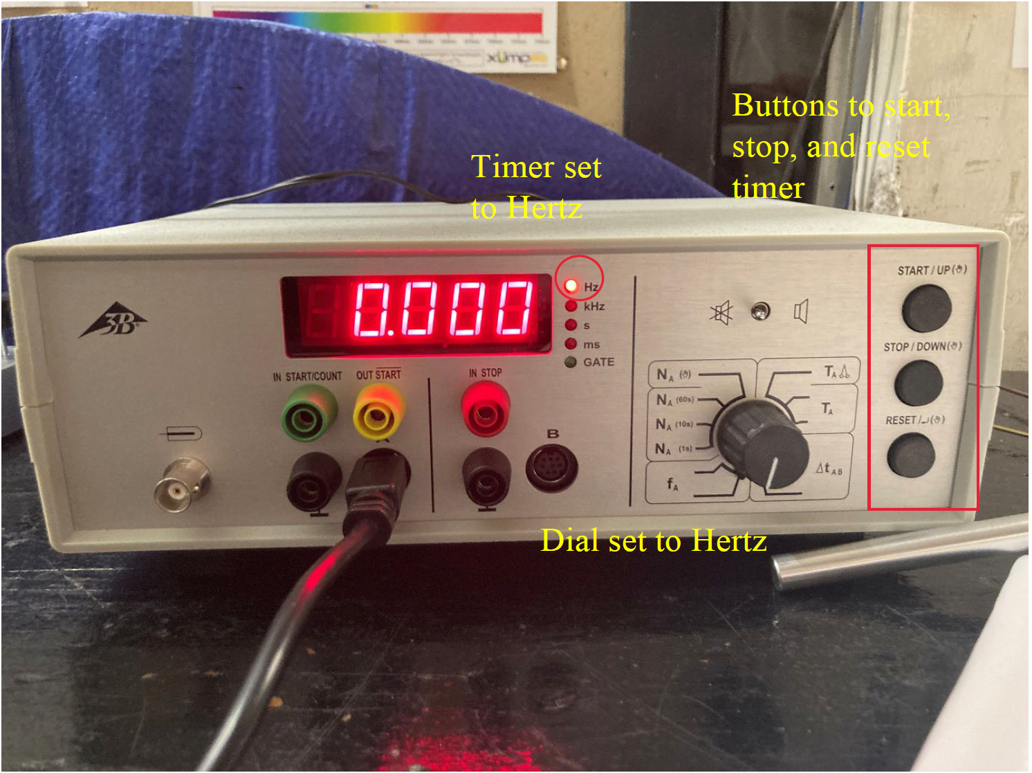 counter/timer is plugged in and set to measure a frequency in Hertz. See Fig. 4 for reference.