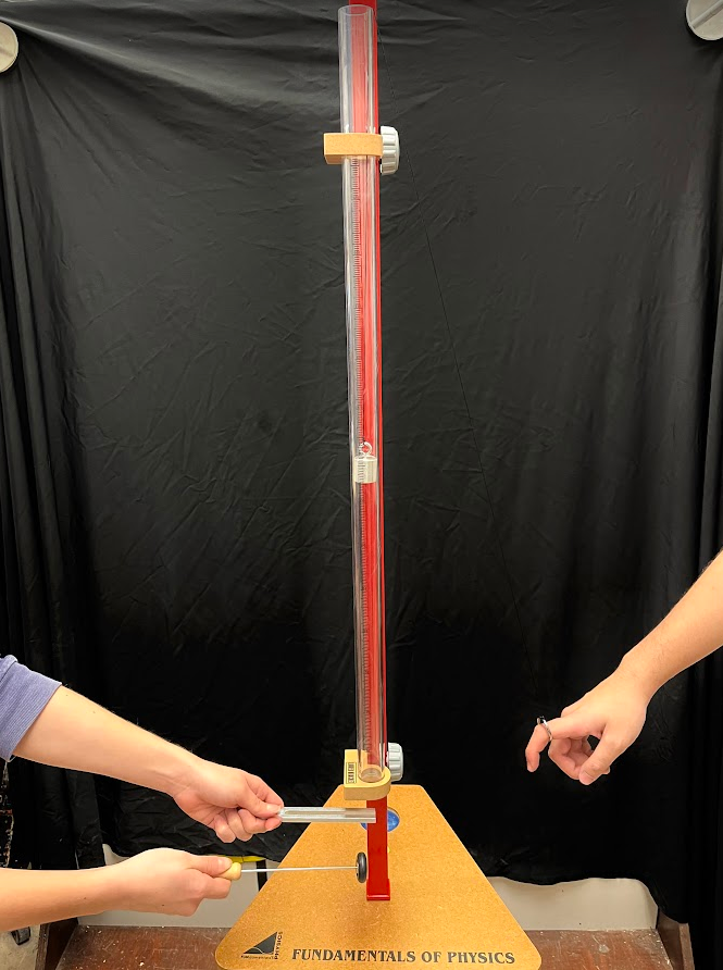 - The mass acts as a closed end for the tube, so the length of the tube can be adjusted by changing the height of the mass. At specific lengths of the tube, resonance will occur for the chosen frequency. The length of the tube is measured starting from the bottom.