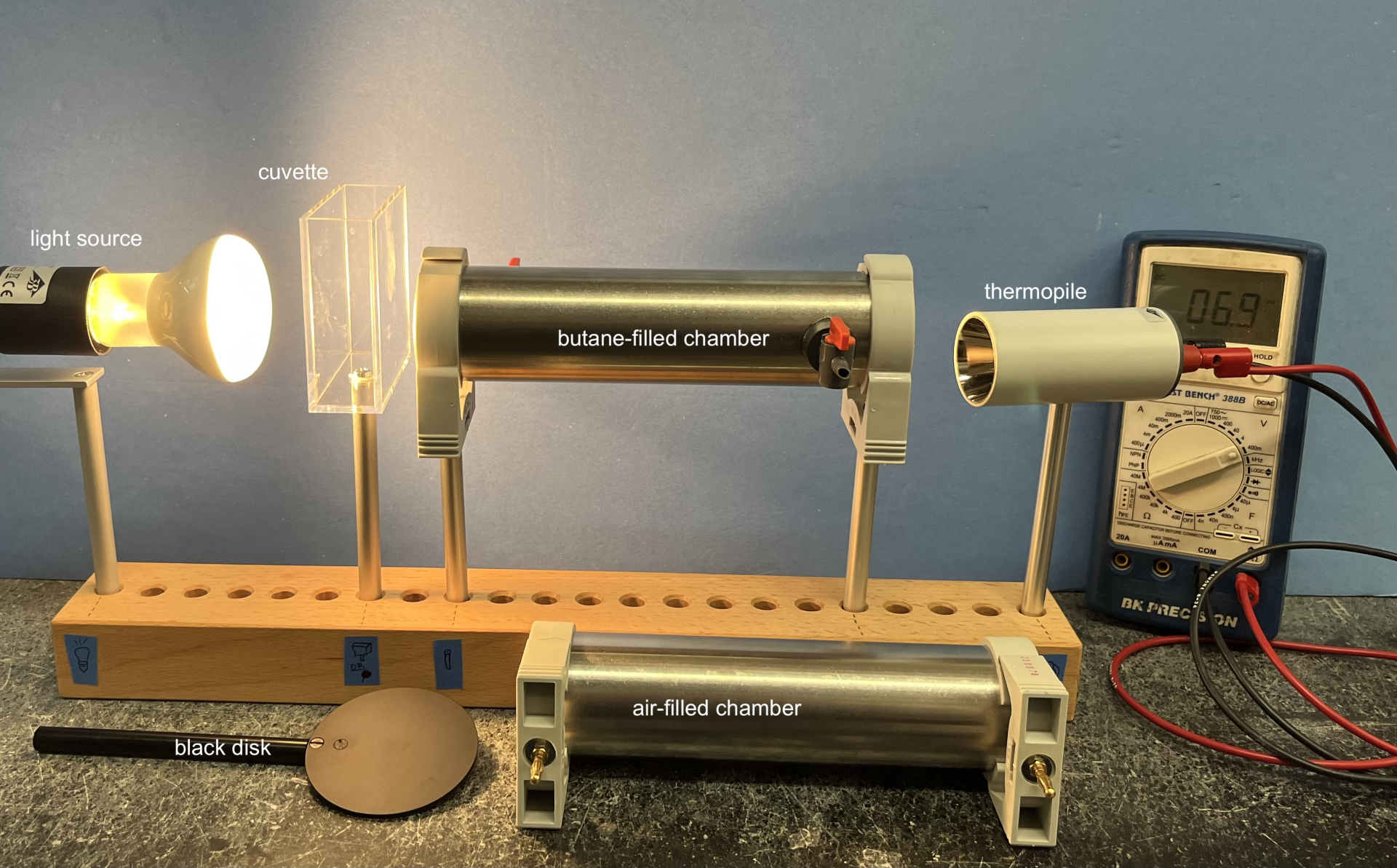 - Demonstrates the effect of greenhouse gases on the absorption of solar radiation.