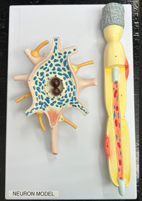 - This is a model of a neuron and an axon with specific parts labeled.