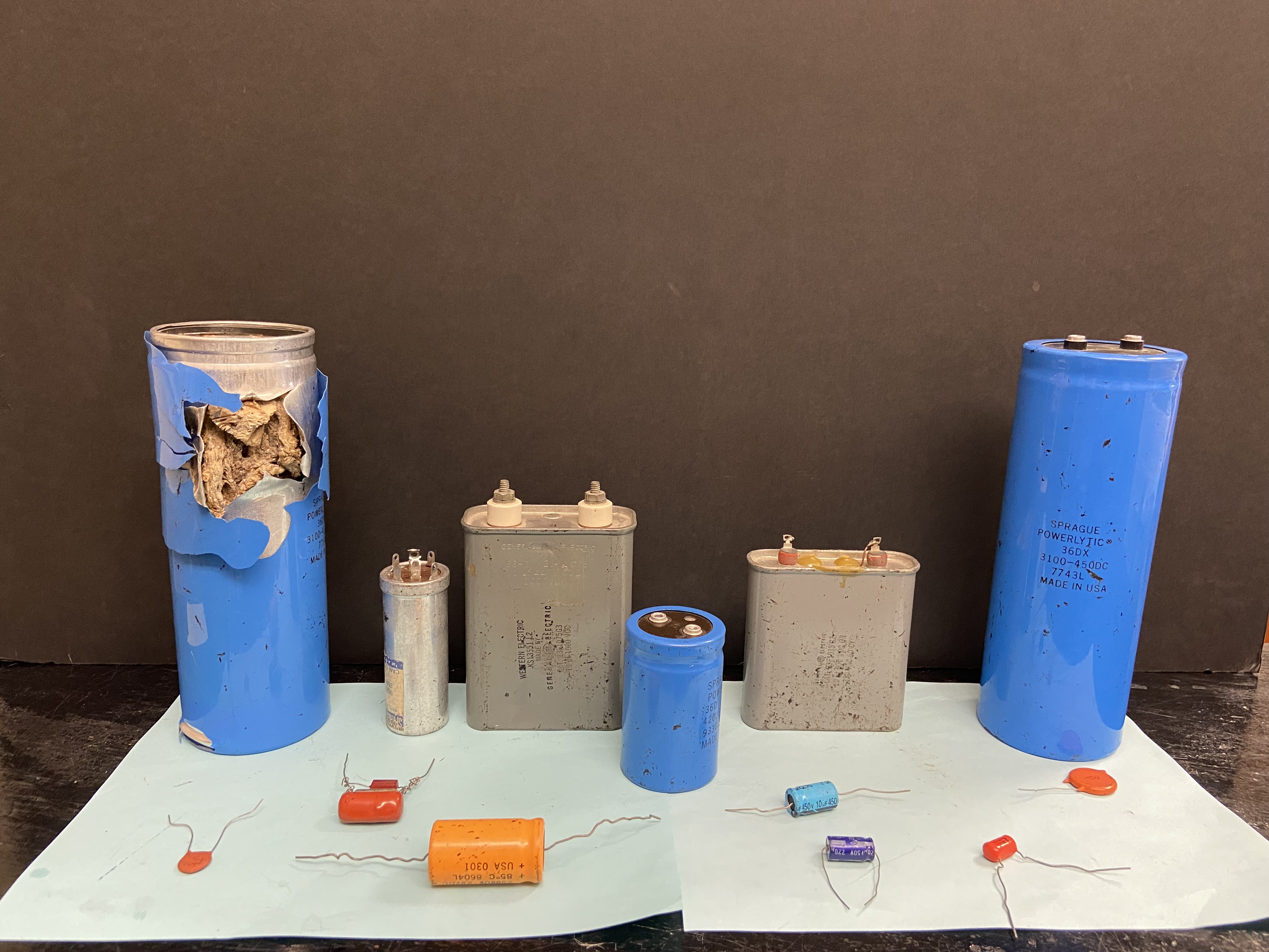 - An assortment of capacitors - including one variable and some dissected or destroyed.