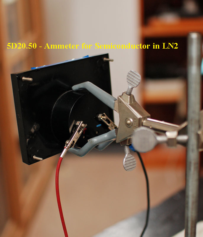 - Submerge the thermistor in liquid nitrogen. Observe the change in current due to the decrease in temperature.