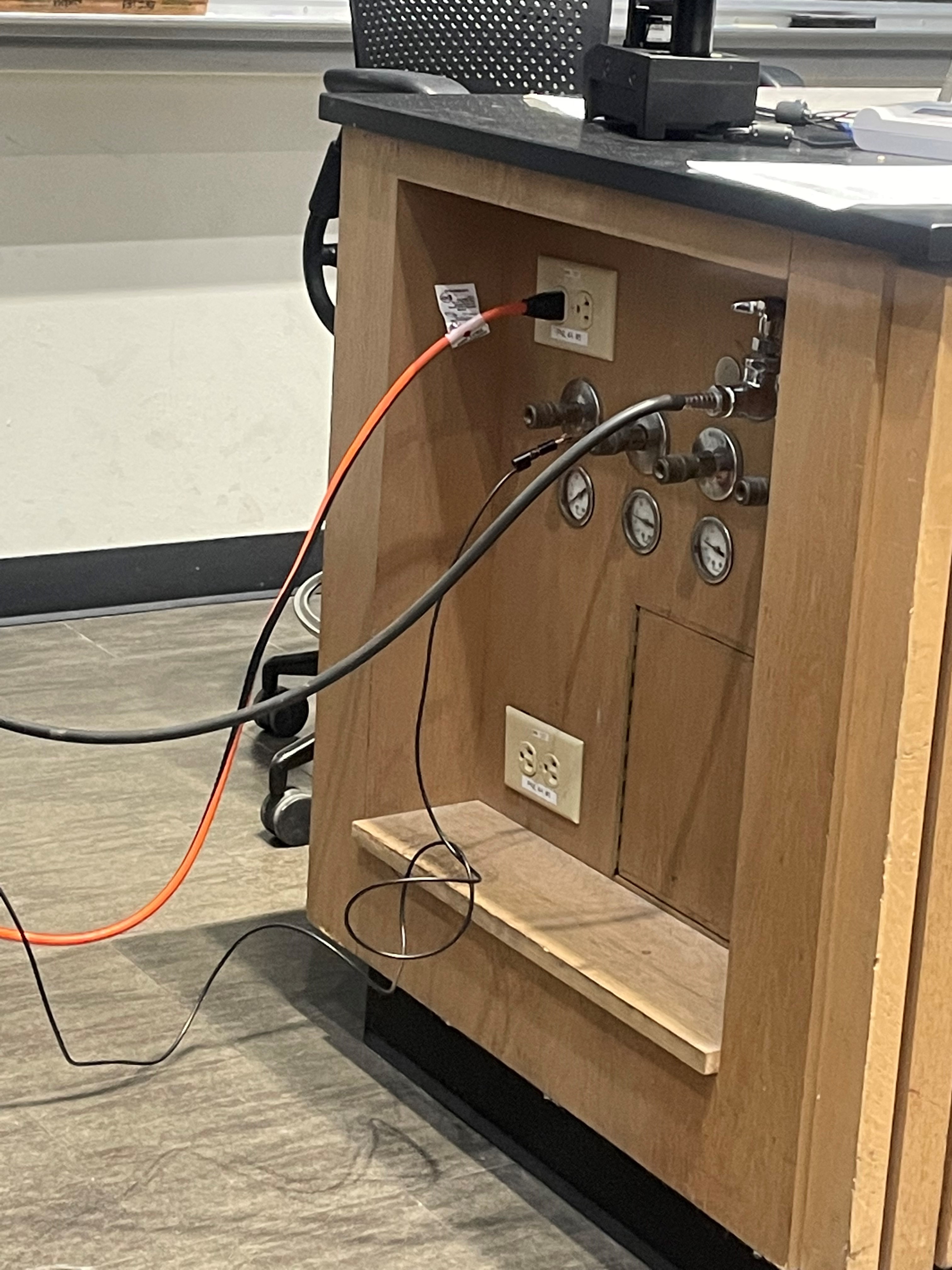 In the classroom, ground Bunsen burner by clipping one end of a wire to the burner itself and the other end to a port next to the gas port (refer to photo of setup below).