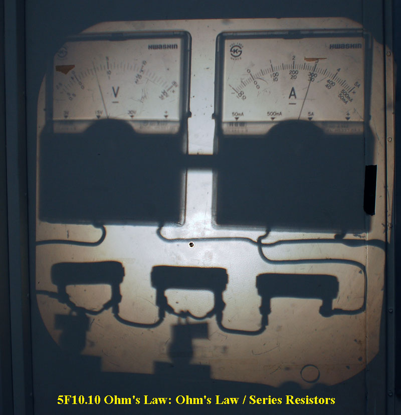 - The core of the demo is a simple circuit with three resistors wired in series to a 500 mA projection-ammeter