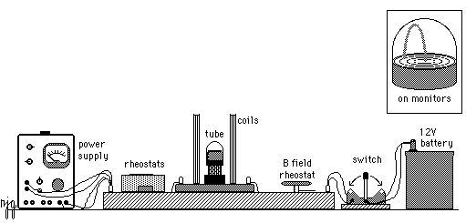 - The accelerating electric potential is set up with two 45V batteries.