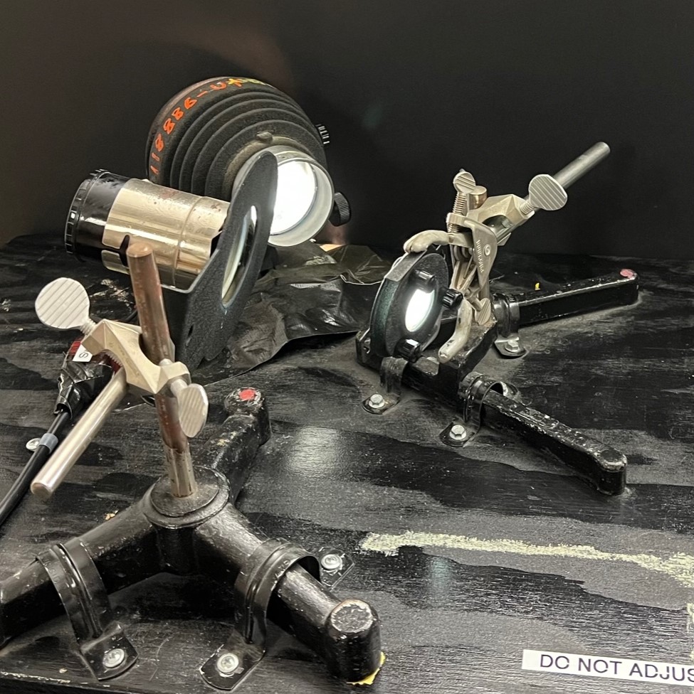 - Demonstration includes a projector lamp, a Newton's Rings set of glass plates, and a projection lens.