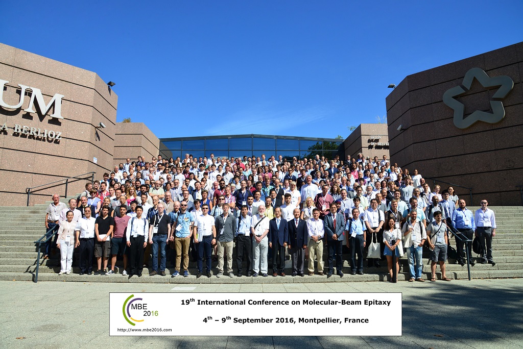 Kristy and Patrick in the Group Photo from the 19th International Conference on Molecular Beam Epitaxy in Montpellier, France.