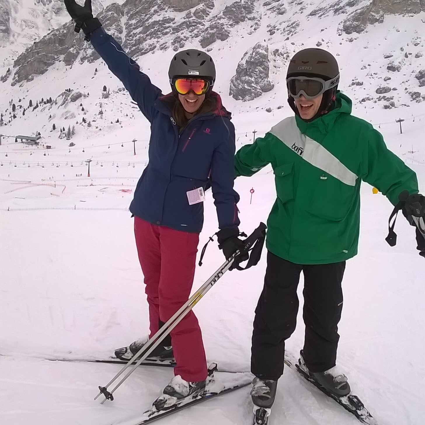 Kristy and Florian skiing at the EuroMBE conference in Canazei, Italy.